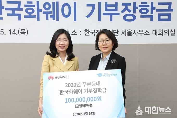 (대한뉴스 김기준 기자)=한국장학재단(이사장 이정우, 이하 “재단”)과 한국화웨이(지사장 멍 샤오윈(Meng Shaoyun))는 5월 14일(목) 한국장학재단 서울사무소 대회의실에서 1억 원의‘푸른등대 한국화웨이 기부장학금’기탁식을 개최했다.