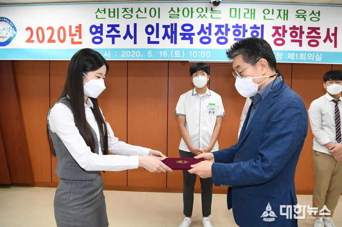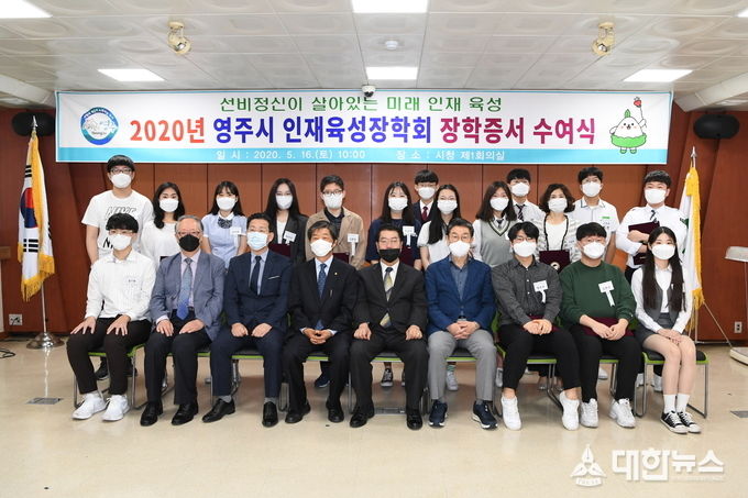 (대한뉴스 김기준 기자)=(재)영주시인재육성장학회(이사장 장욱현)는 지난 16일 영주시청에서 ‘2020년 영주시인재육성장학회 장학증서 수여식’을 개최했다.