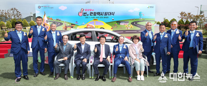 (대한뉴스 박청식 기자)=강진군은 지난 14일 강진만 생태공원에서 이승옥 강진군수를 비롯한 위성식 군의회 의장, 개인택시강진군지부장 및 법인택시 대표, 관광택시 운전자, SNS 홍보단 등 200여 명이 참석한 가운데 관광택시 발대식을 개최했다.