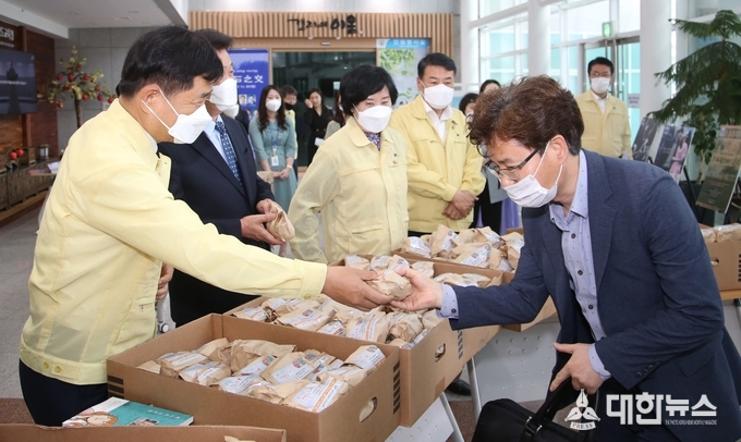 장석웅 교육감을 비롯한 도교육청 간부들은 이날 오전 코로나19로 인해 침체된 지역경제를 고려해 지역농산물인 감자와 방울토마토를 출근길 직원과 방문객에게 나눠줬다. 이는 80년 5·18 당시 시민과 학생들이 주먹밥을 나누며 실천했던 연대 정신을 재현한 것이다.
