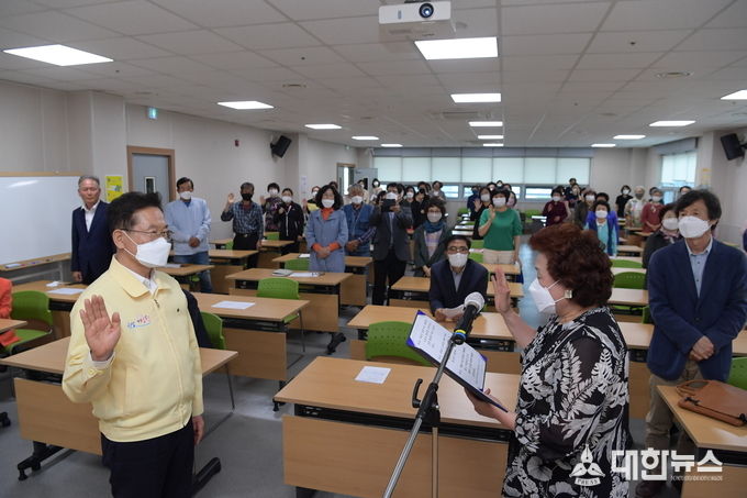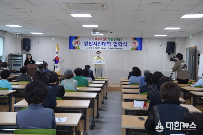 (대한뉴스 김기준 기자)=영천시(시장 최기문)는 25일(월) 교육문화센터 회의실에서 교육생 50명이 참석한 가운데 ‘2020년 영천시민대학 입학식’을 개최했다.