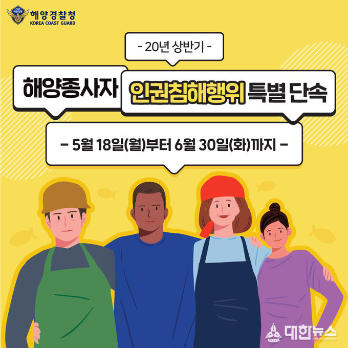 (대한뉴스 김기준 기자)=동해해양경찰서(서장 권오성)는 해양 종사자 인권 침해 사범에 대한 특별 단속’을 오는 6월 30일까지 실시한다고 25일 밝혔다.