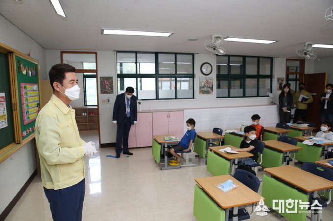 이 시장은 이어 1~2학년 교실을 찾아 방역 준비상황과 급식소 안전대책 등 학교의 준비상황 전반에 대해 꼼꼼히 살피며 학교 현장의 코로나19 대응 상황을 점검하는 한편, 수업 준비에 애쓴 교직원들의 노고에 격려와 감사의 인사를 전하며 어린 학생들인 만큼 좀 더 세심한 관심을 갖고 학교생활 중 발열증세 등 건강상태를 꼼꼼히 확인해 줄 것을 당부했다.