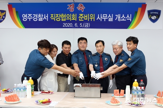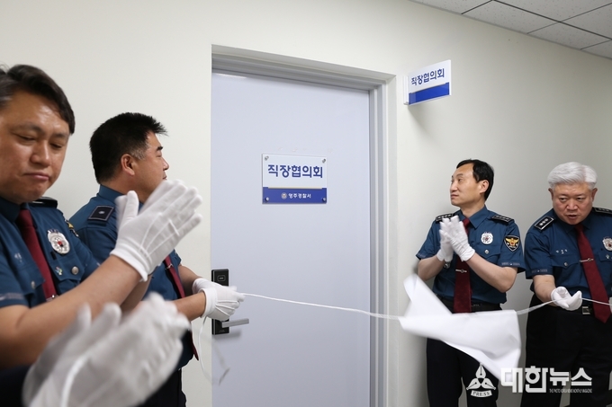 (대한뉴스 김기준 기자)=영주경찰서(서장 류창선)는 5일 서장, 과장, 직장협의회 준비위원장(경위 김상규) 등 20여명이 참석한 가운데 영주경찰서 직장협의회 사무실 개소식을 가졌다.