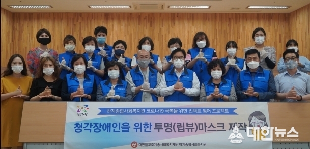 (대한뉴스 한원석 기자)=하계종합사회복지관(관장 오명진)은 코로나19와 무더위 극복을 위한 ‘언택트 썸머 프로젝트’의 일환으로 지난 19일 청각장애인들을 위한 입술이 보이는 투명마스크(립뷰마스크)를 제작활동을 실시했다.