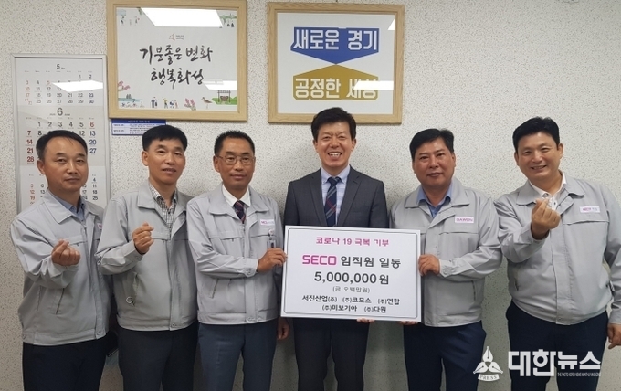 또한 지난 25일에는 자동차부품 전문기업 SECO의 계열사 서진산업(주), ㈜코스모, ㈜연합, ㈜미보기아, ㈜다원이 코로나19 극복을 위해 써달라며 500만원을 후원했다. 이 후원금은 코로나19에 취약한 저소득계층을 위해 쓰일 예정이다.