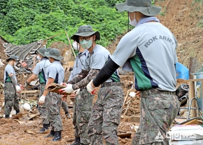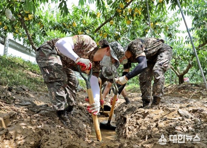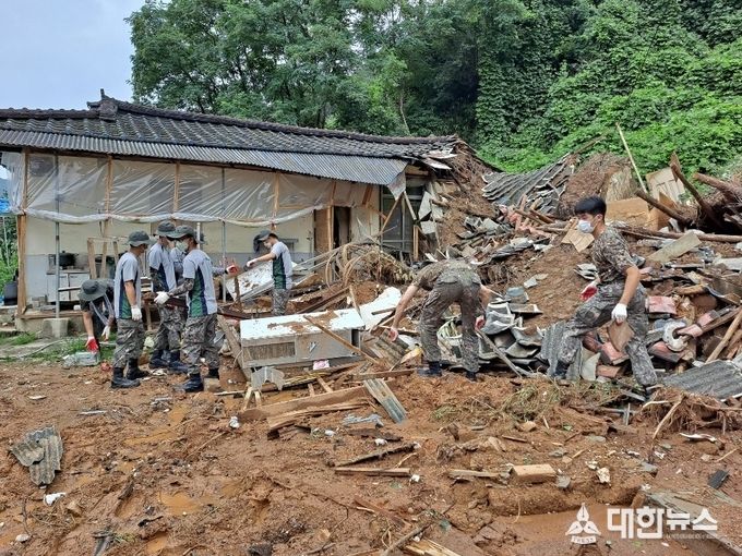 (대한뉴스 김기준 기자)=육군미사일사령부는 지난 8월 4일부터 7일까지 나흘째 이어진 집중호우로 많은 피해를 입은 충북지역에 대해 복구 지원을 하고 있다.