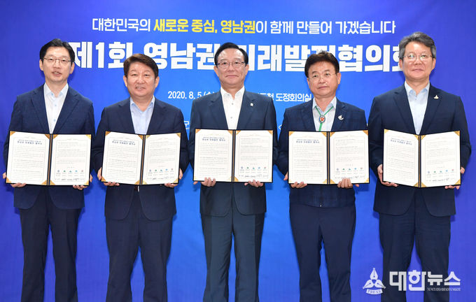 (대한뉴스 김기준 기자)=영남권 5개 시도가 대한민국의 새로운 경제중심으로 국가발전을 주도하는 ‘그랜드 메가시티’ 구축을 위해 손을 맞잡았다.