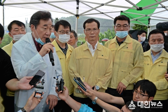 (대한뉴스 김기준 기자)=이낙연 전 국무총리가 5일 이번 호우로 큰 피해를 입은 충북 음성군 감곡면을 방문해 호우피해 지역주민들의 생생한 목소리를 듣고 아픔을 달랬다.