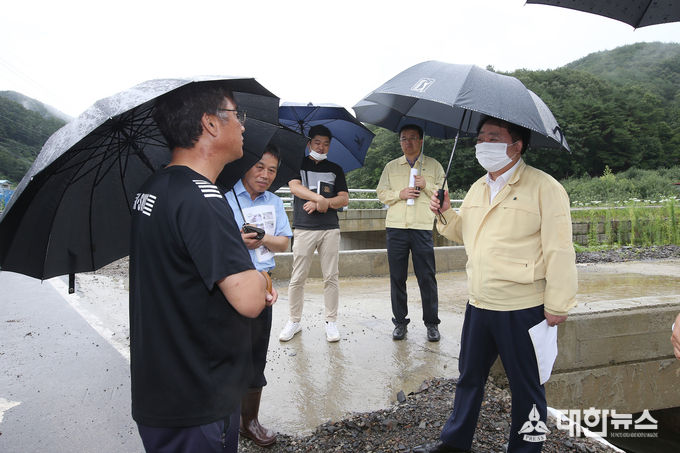 (대한뉴스 김기호 기자)=한범덕 청주시장이 10일 오후 2시 30분 상당구 미원면 호우피해 복구 현장을 방문했다.
