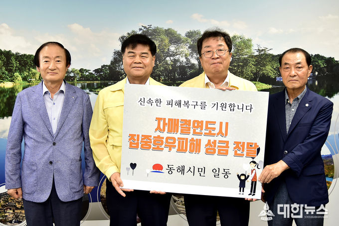 (대한뉴스김기준기자)=최근 자매결연으로 제천시와 인연을 맺은 동해시가 1,500만원의 재난취약계층 지원금을 제천에 전달하고 피해지역에 격려의 말을 전했다.