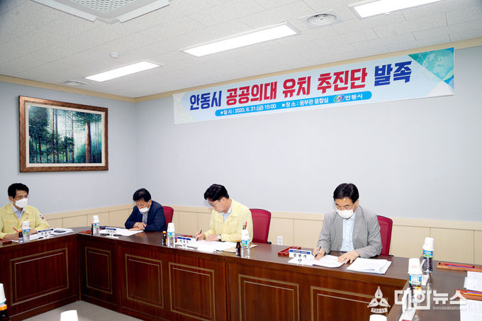 이에, 안동시는 부시장을 단장으로 7개 실무부서, 유관기관(안동상공회의소, 안동의료원), 안동대학교 실무추진단이 안동시 공공의대 유치 추진단을 구성하였으며, 8월 21일 안동시청 웅부관 융합실에서 ‘안동시 공공의대 유치 추진단’을 발족하고 회의를 개최했다.