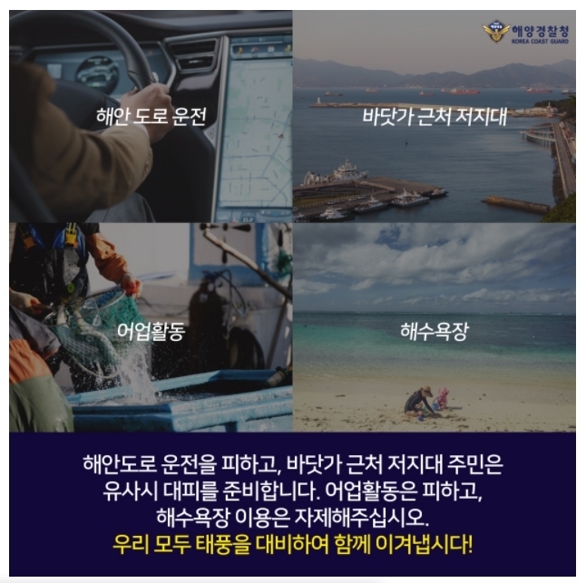 태풍이 가장 먼저 도달하는 서귀포 남쪽 해역에 대해서는 지난 23일부터 3,000톤급 경비함을 배치하고 원거리 해역에서 조업 중이던 어선 35척을 조기에 안전해역으로 이동 조치했다. 또한 서해안을 항행 중인 선박을 대상으로 태풍 피항 방송을 지속적으로 실시 중이다. 특히, 우리 해역으로 대피를 희망하는 중국어선이 사전에 정식 절차를 밟고 안전해역에서 머무를 수 있도록 중국 해양경찰국에 서한문을 발송하는 등 외국선박에 대한 안전조치도 강화했다.