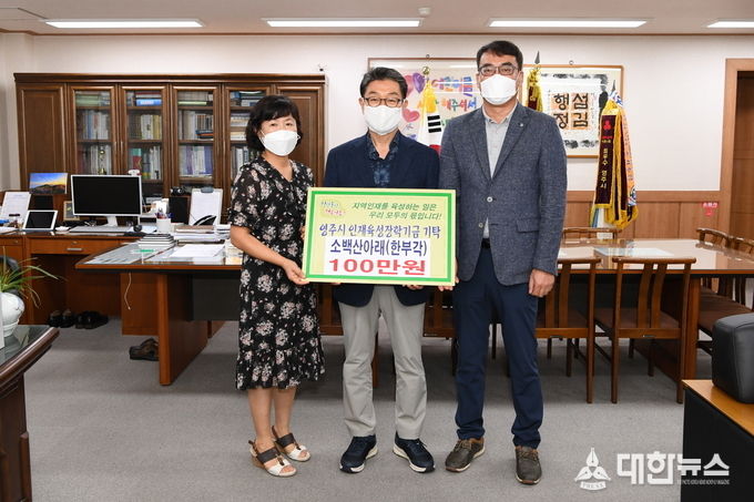 (대한뉴스김기준기자)=영주 소백산아래(대표 추경희)는 27일 영주시청을 방문해 100만원의 장학금을 기탁했다.