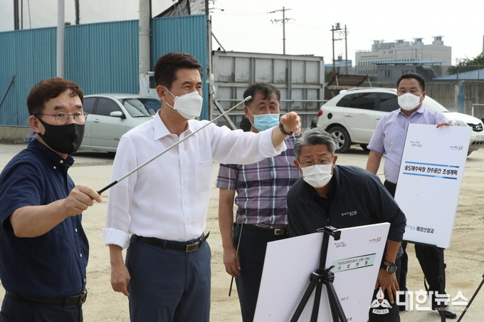 (대한뉴스김기준기자)=이강덕 포항시장은 27일 송도동 일원의 국지도20호선(효자~상원) 건설 예정지를 시찰하였다.