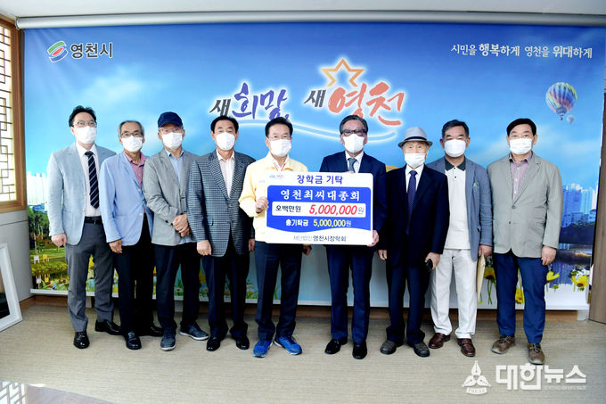 (대한뉴스김기준기자)=영천시(시장 최기문)는 지난 4일 영천최씨대종회에서 500만원의 장학금을 (재)영천시장학회(이사장 최기문)에 기탁했다고 밝혔다.