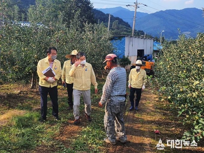 이날 농촌일손돕기 현장을 방문한 장욱현 영주시장은 제9호 태풍 '마이삭'으로 피해를 입은 풍기읍 전구리 과수 피해농가들로부터 긴 장마와 연이은 태풍으로 인한 과수농가 피해상황 등을 청취하고 시 차원의 지원대책 등을 논의했다.