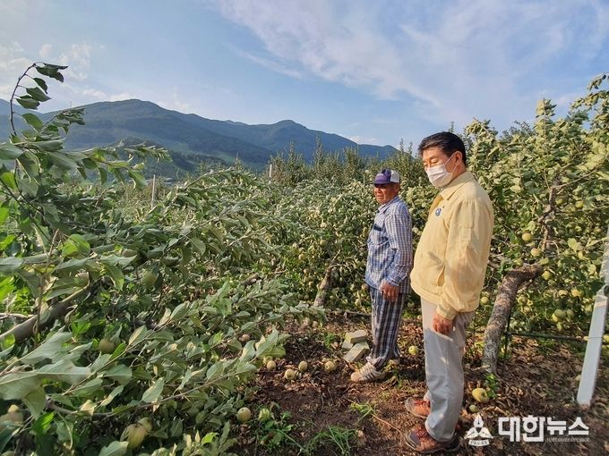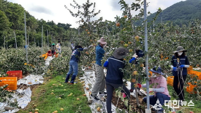 (대한뉴스김기준기자)=경북 영주시(시장 장욱현) 농업기술센터 직원 40여명은 지난 4일 영주시 풍기읍 전구리에서 제9호 태풍 ‘마이삭’으로 낙과피해를 입은 과수농가를 위한 농촌일손돕기를 실시했다.