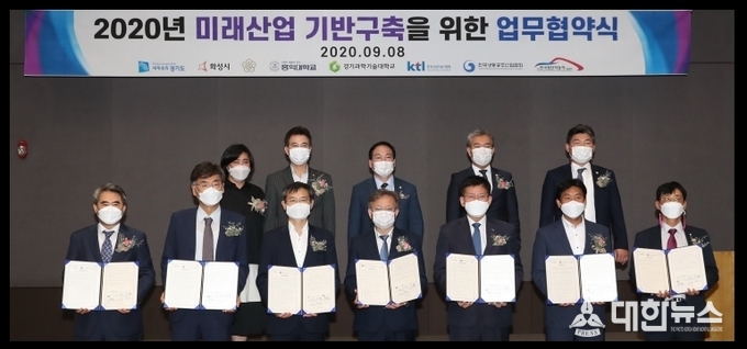 (대한뉴스 한원석 기자)=화성시가 자율주행 기술 등 미래산업의 최적지로 발돋움하고 있다. 시는 8일 신텍스에서 권칠승 국회의원, 경기도, 한국산업기술시험원, 홍익대학교, 경기과학기술대학교, (사)한국첨단자동차기술협회, 한국냉동공조산업협회 등 7개 기관과 ‘산업혁신기반구축 업무협약’을 체결했다.