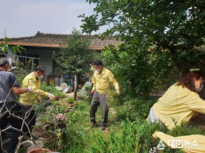 (대한뉴스김기준기자)=영천시 복지정책과(과장 김홍석) 직원들이 화산면 국가유공자 노인가구를 방문해 주거환경 개선을 위한 청소 봉사에 발 벗고 나섰다.
