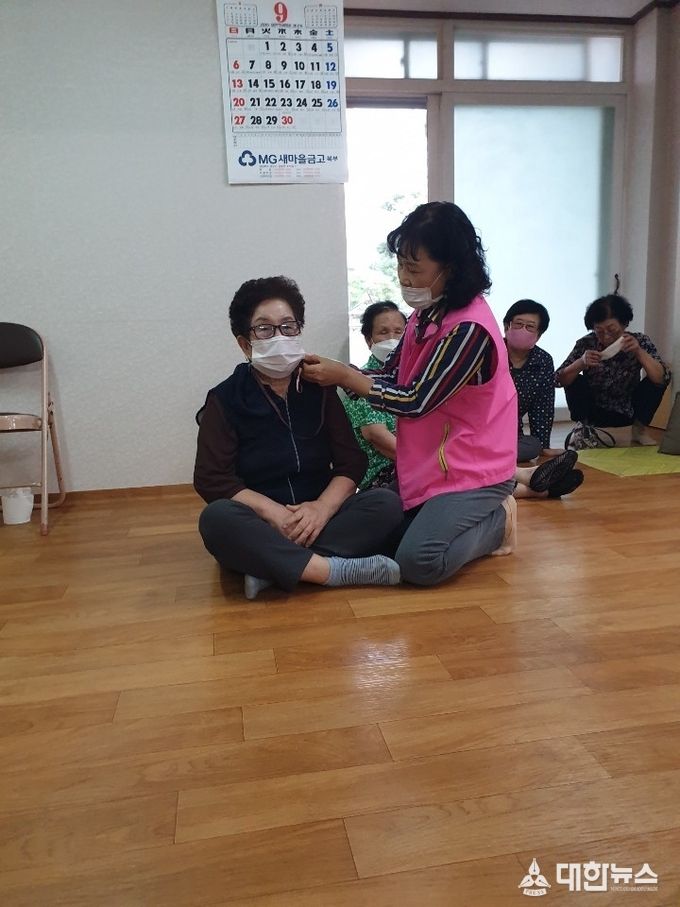 (대한뉴스김기준기자)=대한노인회 경산시지회(지회장 박세평)에서는 18일부터 코로나19 대비 경로당 어르신들의 위생과 안전을 위하여 경로당 행복도우미들이 ‘행복마스크 걸이(끈)’를 자체적으로 제작하여 관내 전 경로당(380개소) 어르신들에게 직접 방문하여 마스크 끈을 달아주면서 전달하기로 하였다.