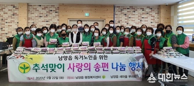 남양읍 새마을부녀회는 매년 송편 나눔행사를 열고 있으며, 이 외에도 지역 어르신과 1:1 매칭으로 가정방문과 전화 모니터링 등 정서적, 사회적 지원을 이어가고 있다.