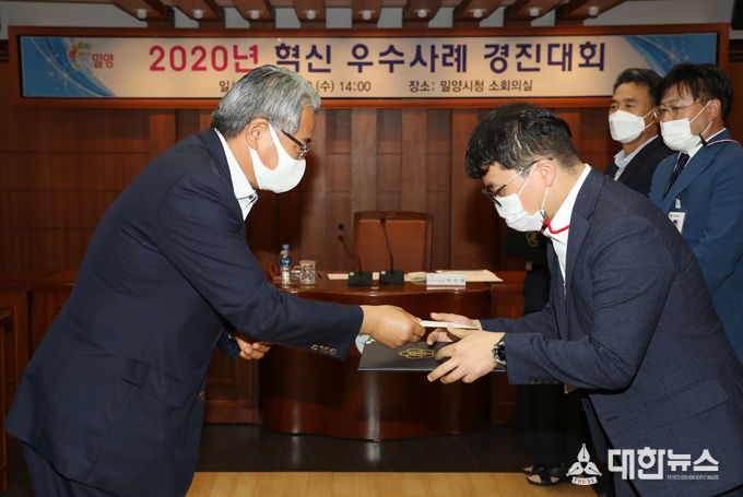(대한뉴스김기준기자)=밀양시는 지난 23일 밀양시청 소회의실에서 ‘2020 밀양시 혁신 우수사례 경진대회’를 개최했다고 밝혔다.