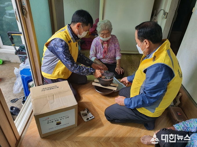 이는 코로나19로 외부활동 감소에 따른 정서적 우울감 해소를 위해 추진됐으며 이금녀(여.80)홀몸어르신 등 30가구에 나눠졌다.