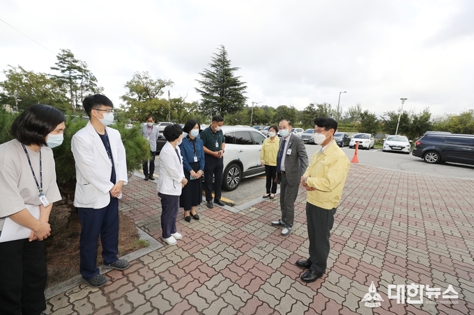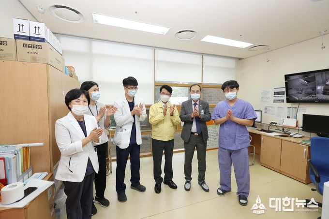 (대한뉴스김기호기자)=김한근 강릉시장은 24일(목) 15시 코로나19로 고생하는 의료진들을 격려하기 위해 강릉의료원을 방문하여 격려금(금 100만 원)을 전달했다.