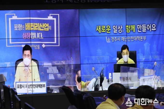 (대한뉴스김기준기자)=포항시와 경주시는 최근 두 지역에서 ‘코로나19’ 확진자가 크게 증가하고 있는 가운데 생활권이 비슷한 지역을 왕래하는 확진자가 발생하는 등 공동대응이 필요하다는 판단에 따라 25일, 첫 영상회의를 개최하고 ‘코로나19’ 안정화에 공동 대응해나가기로 했다.
