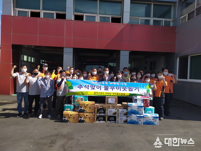 (대한뉴스김기준기자)=2020년 9월 29일 건천읍 의용소방대(대장 박종원, 여대장 표덕자)는 코로나19 재확산으로 감염병 확산 방지를 위해 고향 방문이 어려워 더욱 외로운 독거어르신들을 가가호호 방문하고 60만원 상당의 생필품을 직접 전달하였다.