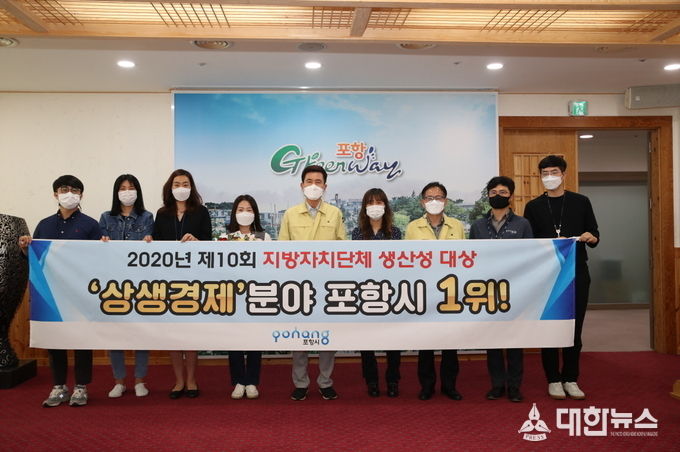 (대한뉴스김기준기자)=포항시는 행정안전부가 주최하고 한국생산성본부(KPC)가 주관한 ‘2020년 지방자치단체 생산성 대상’ 상생경제 분야에서 1위(행안부장관상)를 차지했다고 밝혔다.
