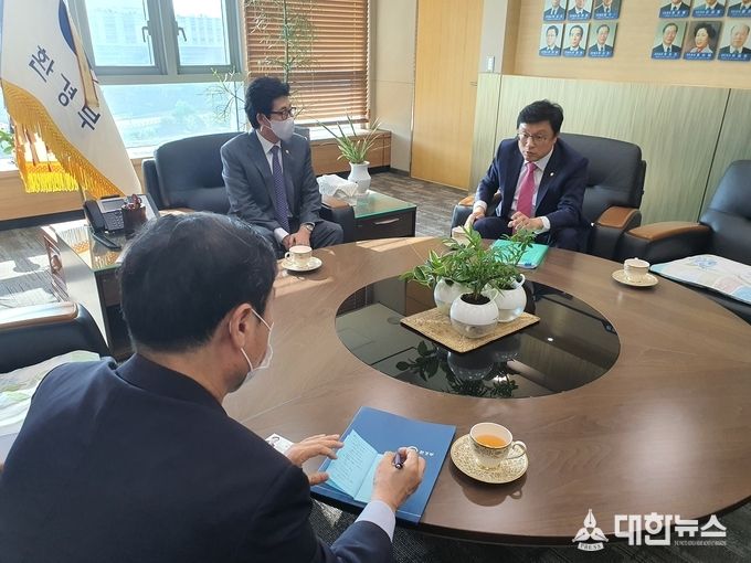 (대한뉴스김기준기자)=박형수 국회의원(국민의힘당.영주.봉화.영양.울진)은 지난 5일 환경부를 방문해 조명래 장관에게 영주댐 방류불가 입장을 강력히 전달했다.
