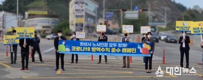 (대한뉴스 한원석 기자)=화성시노사민정협의회가 코로나19 예방과 근로환경 개선을 위한 출근길 거리 캠페인을 벌였다.