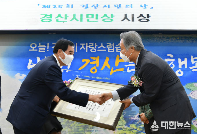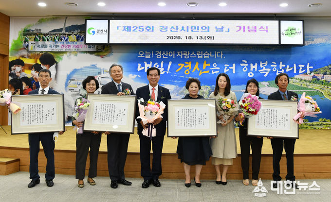 (대한뉴스김기준기자)=경산시(시장 최영조)에서는 10월 13일(화) 경산시민상 수상자, 도·시의원 등 50여명이 참석한 가운데 시청 대회의실에서「제25회 경산시민의 날」기념식을 개최하였다.
