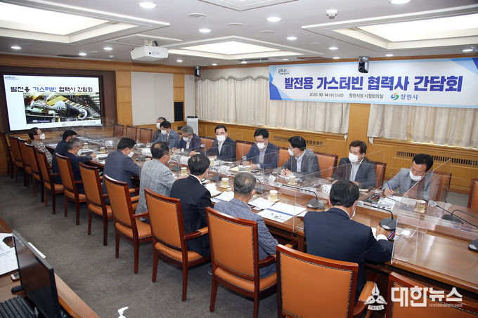 (대한뉴스김기준기자)=창원시(시장 허성무)는 14일 오후 3시 시정회의실에서 유로테크(주) 등 11개 가스터빈 협력사 대표들이 참석한 가운데 ‘발전용 가스터빈 산업 혁신성장을 위한 협력사 간담회’를 개최했다고 밝혔다.