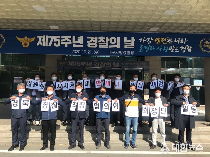 (대한뉴스김기준기자)=경북경찰 직장협의회 회장단(경북청 직협 회장 하영오 등 24명)은 ’20년 10월 20일 14시에 대구지방경찰청 6층에서 개최한 『경찰청 자치경찰추진단 주관 권역별 자치경찰 간담회』에 참석 후, 김영배 더불어민주당 의원이 발의한 일원화 자치경찰제도 법안에 대해 일방적으로 설명하는 자리라며 비판의 목소리를 내며 반발하였다.