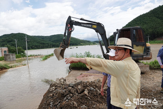 이날 한정우 군수는 현장에서 직접 지휘하면서 유실된 제방에 대하여 신속하고 차질없는 응급복구를 지시했고, 주택 및 농경지가 침수된 이재민들과 농민들을 위로하며 응급복구에 최선을 다할 것을 약속했다.