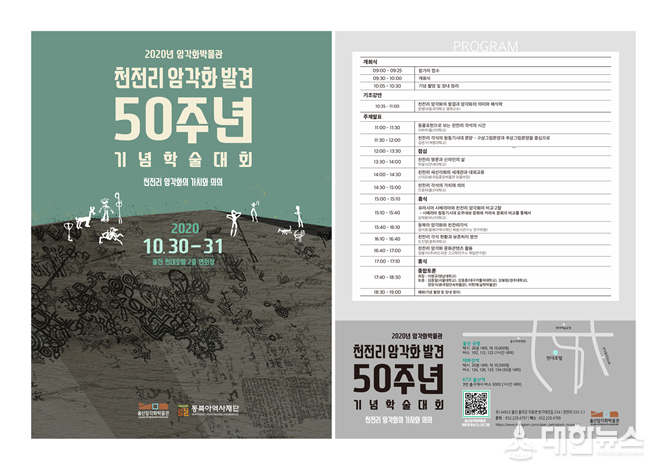 (대한뉴스김기준기자)=울산암각화박물관은 오는 10월 30일(금) 오전 9시부터 동구 현대라한호텔 2층 연회홀에서 ‘천전리 암각화 발견 50주년 기념 학술대회’를 개최한다고 밝혔다.