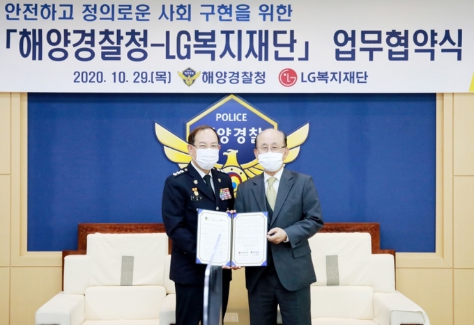 (대한뉴스 한원석 기자)=해양경찰청(청장 김홍희)은 LG복지재단(대표이사 이문호)과 안전하고 정의로운 사회구현을 위한 업무 협약식을 개최했다고 29일 밝혔다.