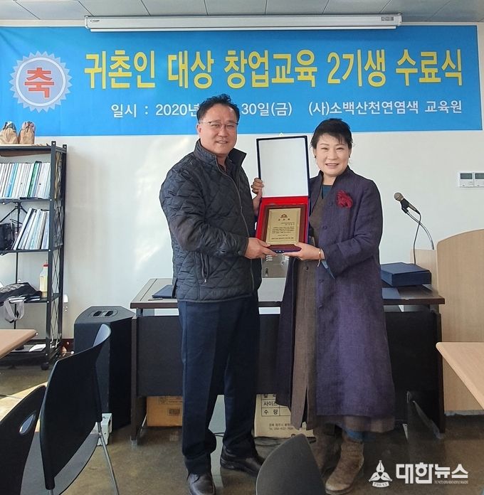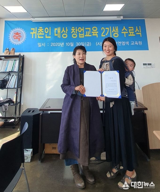 (대한뉴스 김기준기자)=영주시 2020년 농정원 귀촌인 창업교육 2기생 수료식이 지난 30일 오전 (사)소백산천연염색교육관에서 진행 됐다.