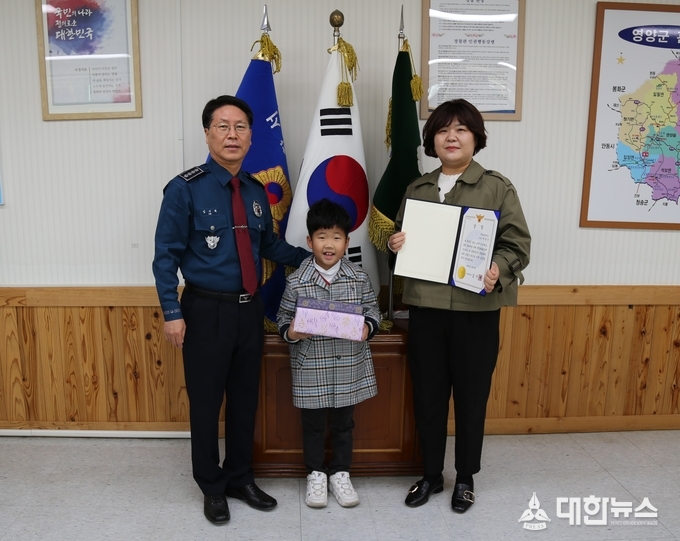 (대한뉴스김기준기자)=영양경찰서는 3일 휴대폰을 주워 신고한 영양초등학교 1학년 하윤성(7)학생에게 상장을 수여했다.