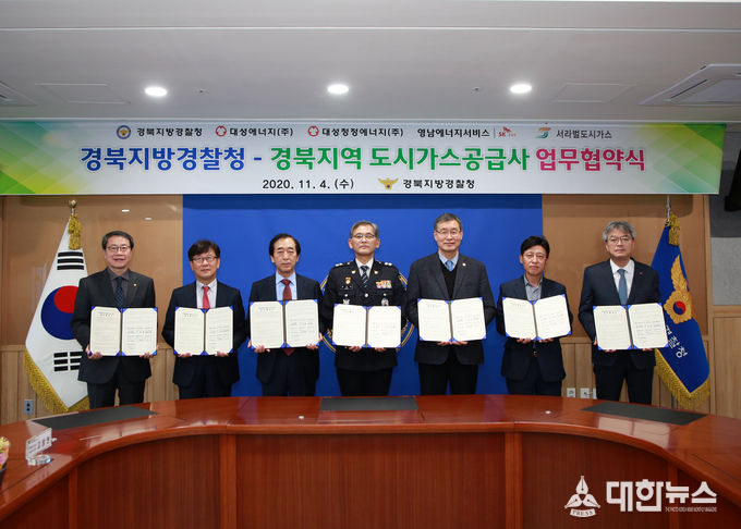 (대한뉴스김기준기자)=경북지방경찰청(청장 윤동춘 치안감)에서는 11월 4일 경상북도 전역에 도시가스를 공급하는 6개 회사와 업무협약(M.O.U.)을 체결하였다.