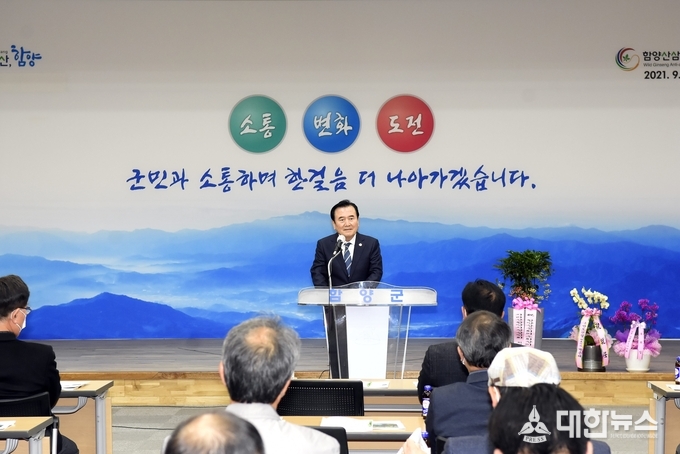 서춘수 함양군수는 “함양군 상공협의회를 오랫동안 이끌어 오신 노원상 이임회장님의 노고에 감사드리며, 새롭게 취임하시는 황순일 회장님께 축하의 말씀을 드린다”며“코로나19로 여러 가지 어려움을 겪고 있지만 다 같이 머리를 맞대고 노력하면 우리 경제도 반드시 되살아 날 것이라고 생각한다”라며 함양군 지역 기업인의 역할이 큼을 강조했다.