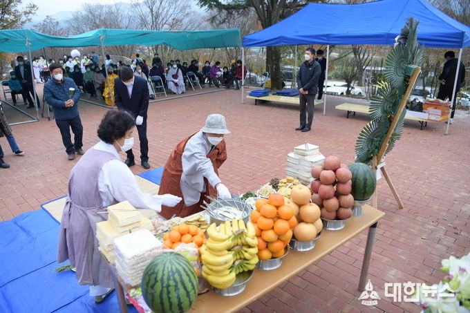 대한불교 법화종 용화사(주지 혜각)에서 주관한 이날 위령제는 최기문 시장 및 조영제 시의회의장, 시의원 등 내빈과 참전용사, 용화사 신도 등이 참석했으며, 식전행사로 신녕풍물단의 지신밟기, 살풀이 춤, 당산굿 등의 진혼제가 시연되었고, 환영사, 봉행사와 추도사, 헌화 순으로 진행되었다.