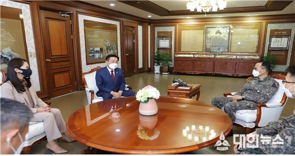 (대한뉴스김기호기자)=최홍묵 계룡시장은 지난 9일 계룡대를 방문해 육군참모총장(대장 남영신)과 환담을 갖고 현안사항에 대한 상호협조와 협력방안에 대한 의견을 나눴다.