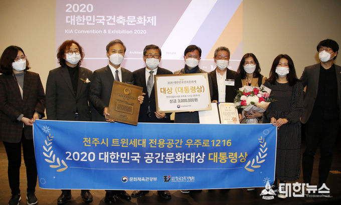 김승수 전주시장은 18일 서울 써밋 갤러리에서 열린 ‘2020 대한민국 공간문화대상’ 시상식에서 대통령상 상장을 받았다.