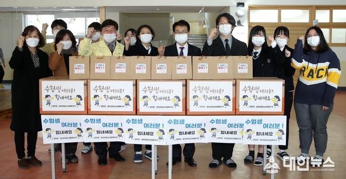응원물품은 관내 고등학교 3학년 학생들에게 전달됐으며 수험생 대표와 학교 관계자 등 최소한의 인원만 참여한 가운데 진행됐다.