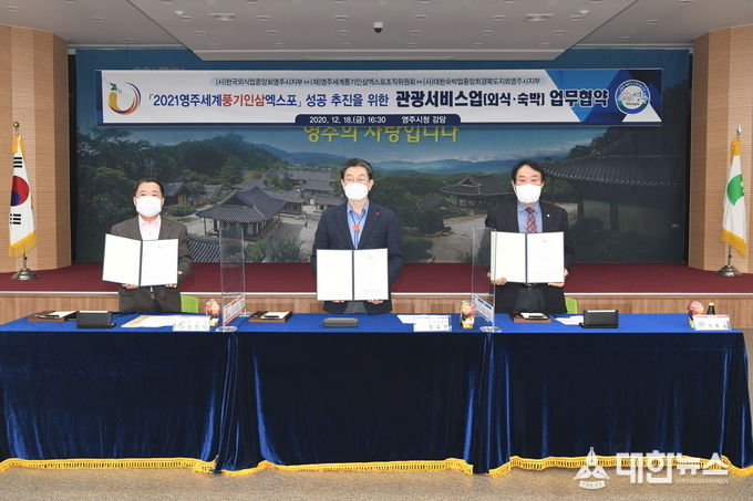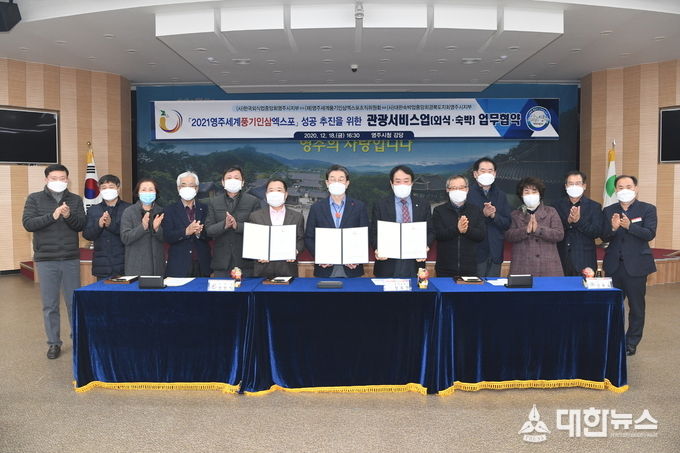 18일 시청강당에서 코로나19 방역수칙을 철저히 지키며 체결된 이번 협약은 영주시 관광서비스 증진 및 『2021영주세계풍기인삼엑스포』 성공추진을 위한 밑거름이 될 것이다.