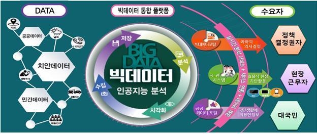 ‘경찰청 빅데이터 플랫폼’은 경찰이 보유하고 있는 치안데이터와 지역 환경 등의 공공데이터를 인공지능으로 분석하여, 지역별 맞춤형 치안정책 수립과 선제적 현장 활동을 지원한다. 핵심 기능은 ▵경찰 전용 데이터 댐을 구축하여 경찰 업무에 필요한 치안·공공·민간데이터를 한곳에 모아 통합 관리하고 ▵빅데이터 활용을 위한 인공지능 분석 도구를 제공하는 것으로, 향후 경찰청 빅데이터 플랫폼에 수집된 데이터와 분석 도구를 공동으로 활용해, 생활안전·교통 등 다양한 경찰 업무에 첨단 지능정보기술을 적용할 수 있게 되었다.